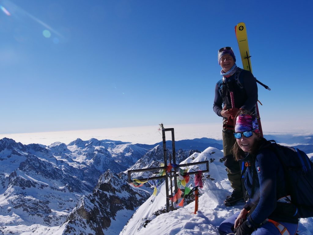 Je m’en souviens encore : c’était grisant de skier cette belle neige de printemps, face à la mer, dans un massif loin d’être à sous-estimer. Ici, c’est raide, les options pour passer d’un refuge à un autre sont multiples, les ingrédients parfaits pour faire partie des grands raids à ski des Alpes.