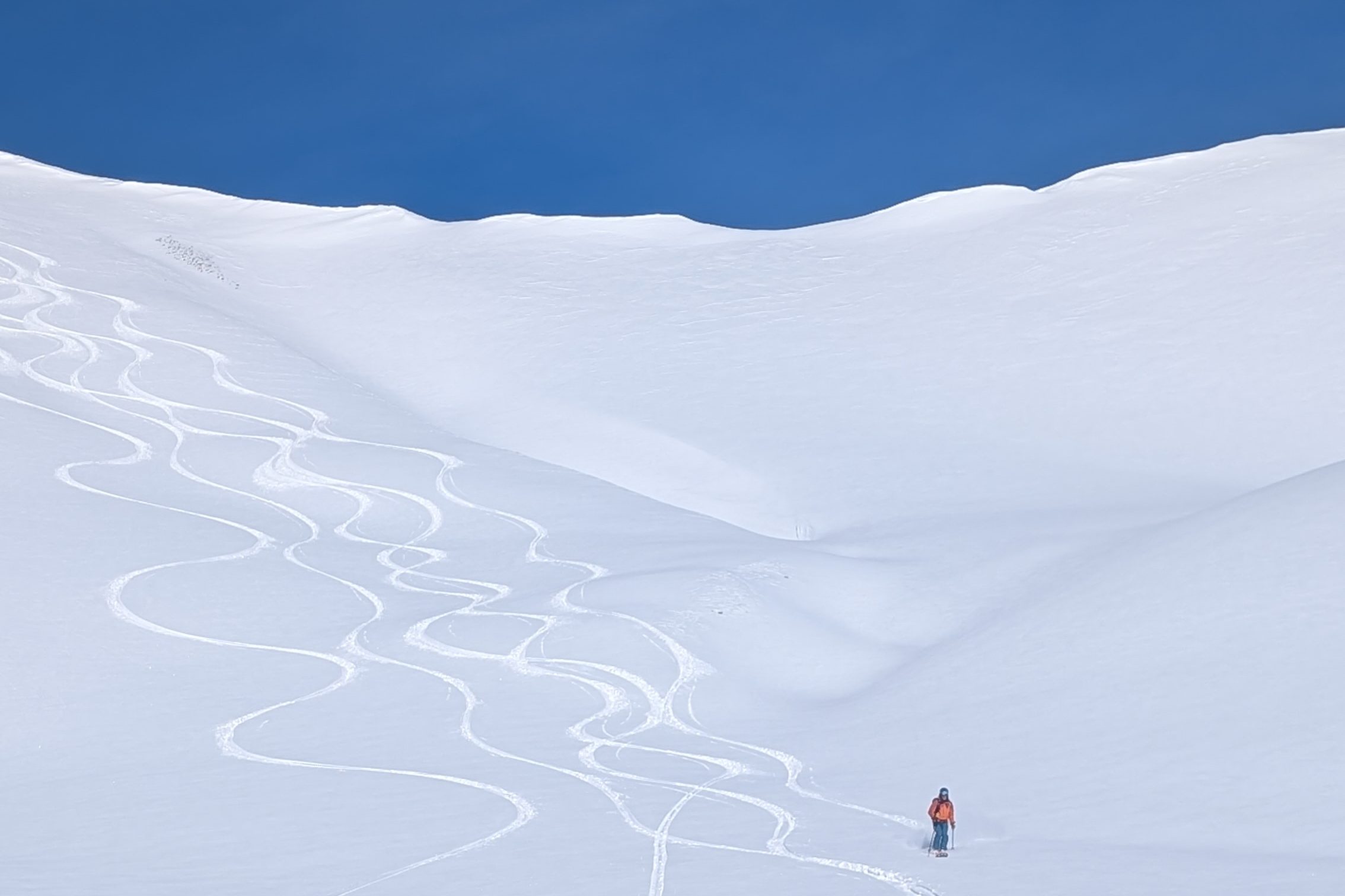 Au programme : pentes douces, loin des inclinaisons trop engagées, et un maximum de plaisir à découvrir encore et encore de nouveaux itinéraires sûrs, en ski de randonnée ou en utilisant les remontées mécaniques avant de mettre les peaux de phoque pour aller chercher quelques pentes vierges.